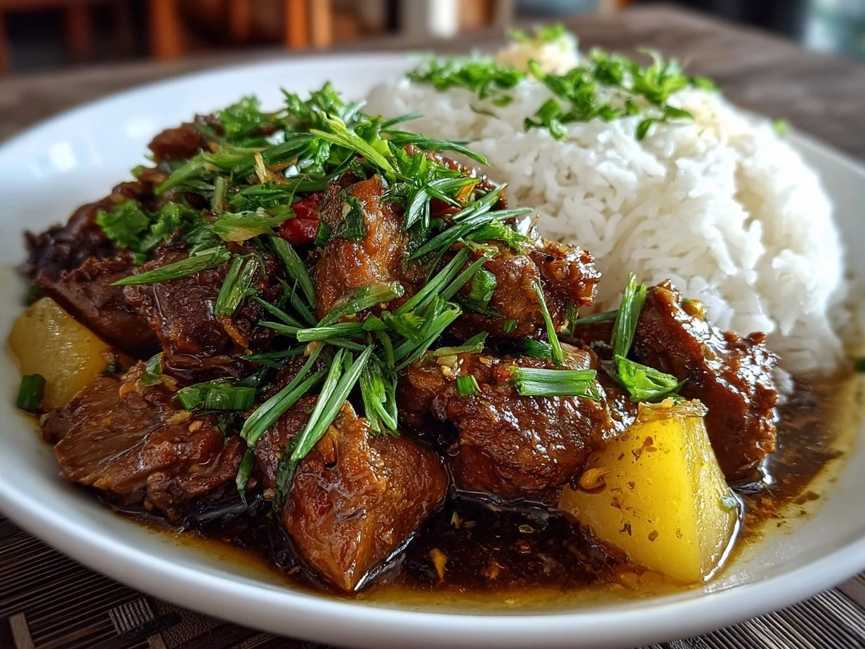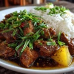 Filipino Chicken Adobo is a savory and tangy stew featuring tender chicken simmered in a flavorful blend of soy sauce, vinegar, garlic, and spices. This classic Filipino dish offers a perfect balance of salty, sour, and slightly sweet flavors.