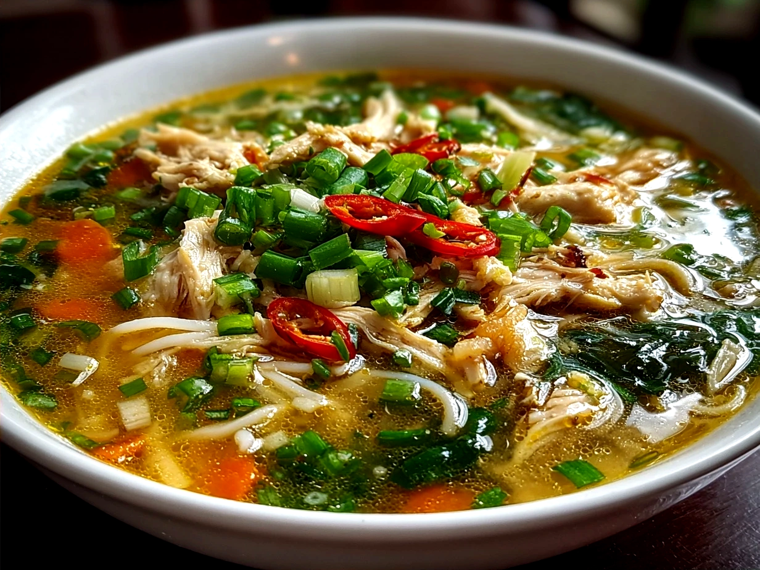 This comforting Ginger Scallion Chicken Noodle Soup combines fragrant ginger and fresh scallions in a savory broth, perfect for a nourishing meal any day.