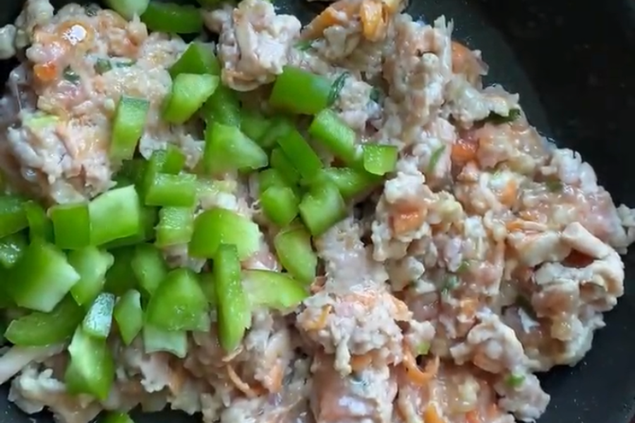 - Add the minced pork mixture and brown the pork.