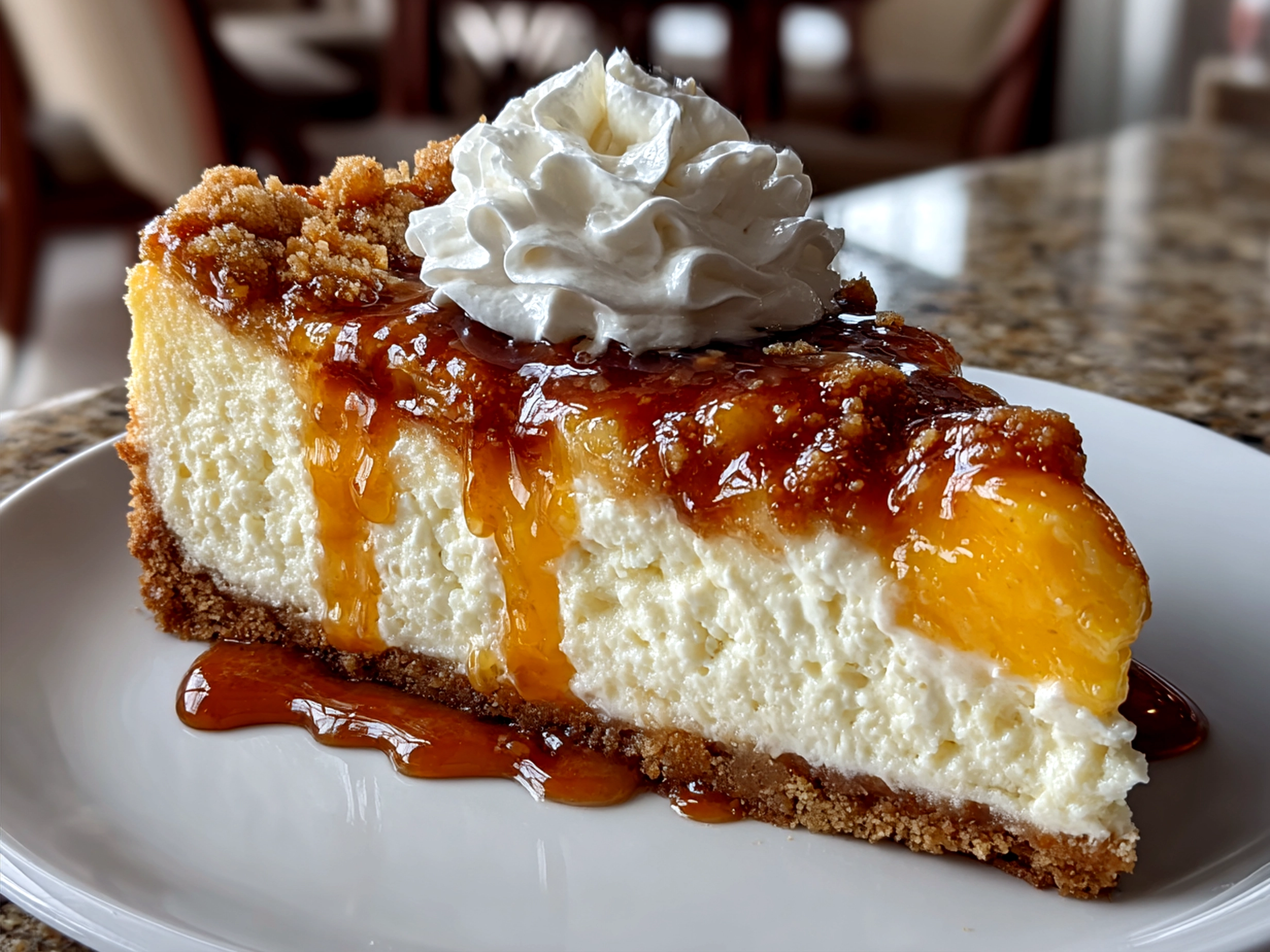 This Peach Cobbler Cheesecake combines creamy cheesecake with a sweet, spiced peach cobbler topping, creating a decadent dessert perfect for any occasion.