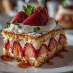 Strawberry Shortcake is a classic American dessert featuring tender shortcakes layered with fresh strawberries and whipped cream for a light and refreshing treat.