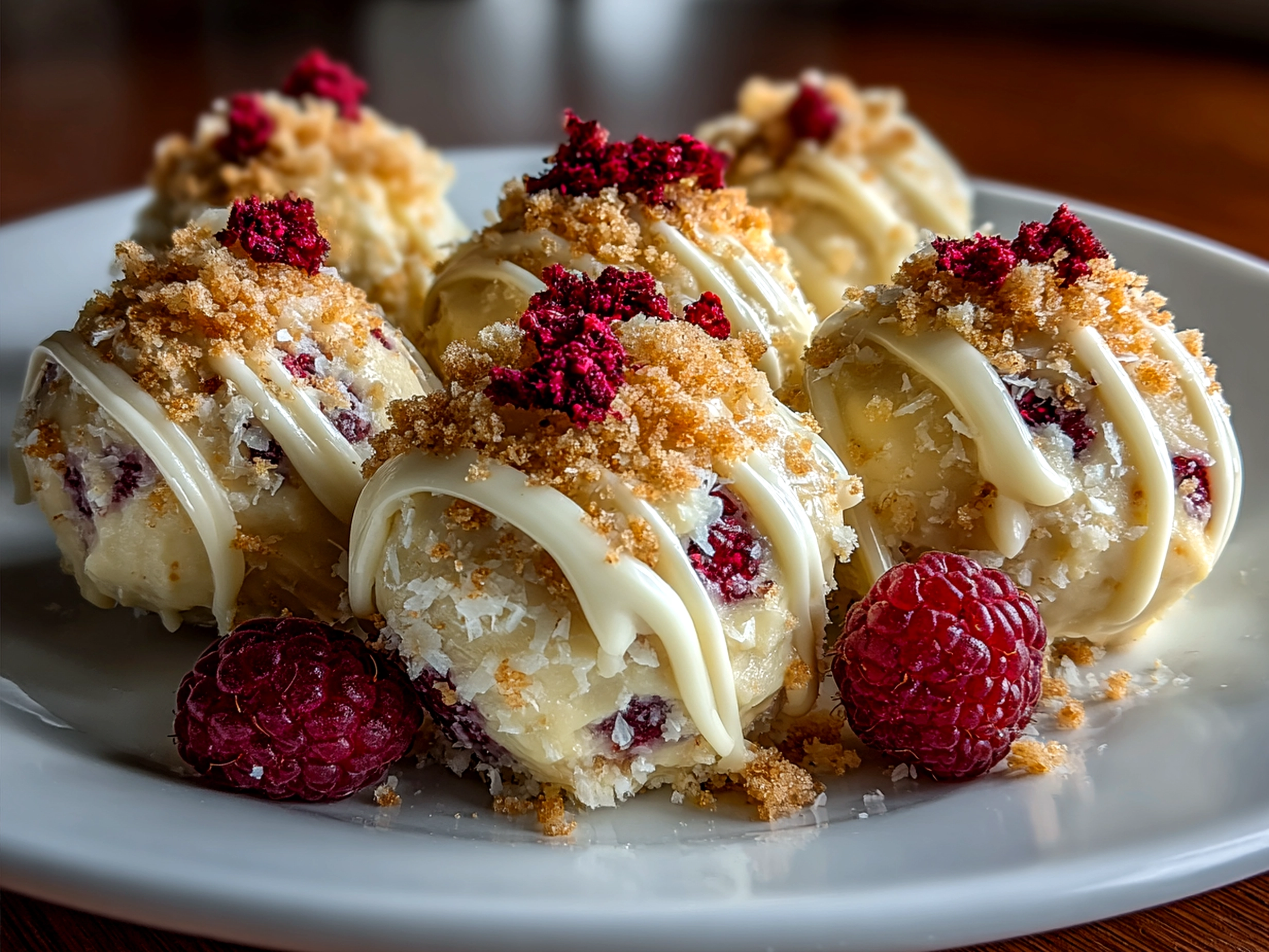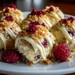 Delight in these creamy, tangy raspberry cheesecake truffles that blend smooth cream cheese with fresh raspberries, coated in a luscious white chocolate shell for an irresistible bite-sized dessert.