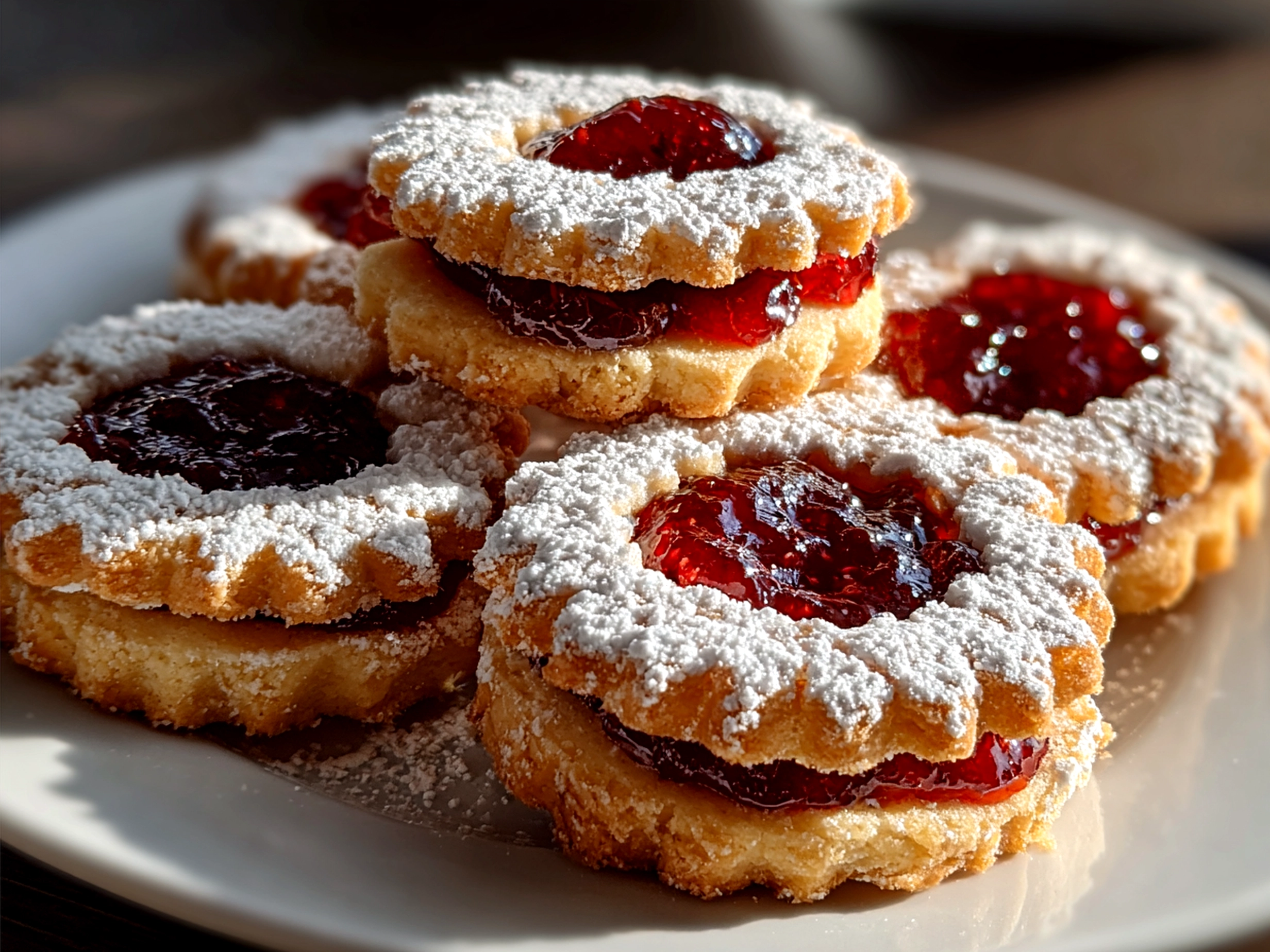 These Raspberry Linzer Cookies are delicate, buttery sandwich cookies filled with sweet raspberry jam, perfect for a festive dessert or afternoon treat.